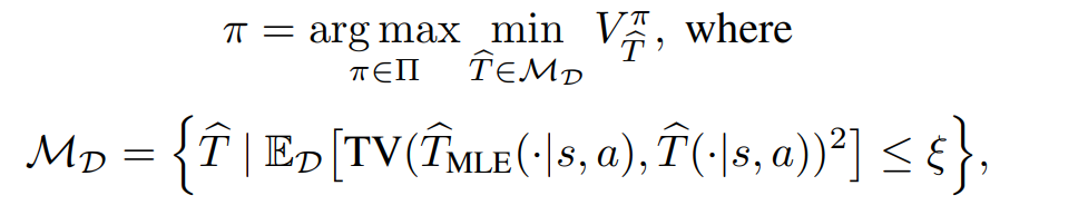 -> 여러 환경(기존 환경과의 차이가 일정 수준 내의)들에서의 성능 중 최소가 최대가 되도록 하는 정책 == robust한 정책