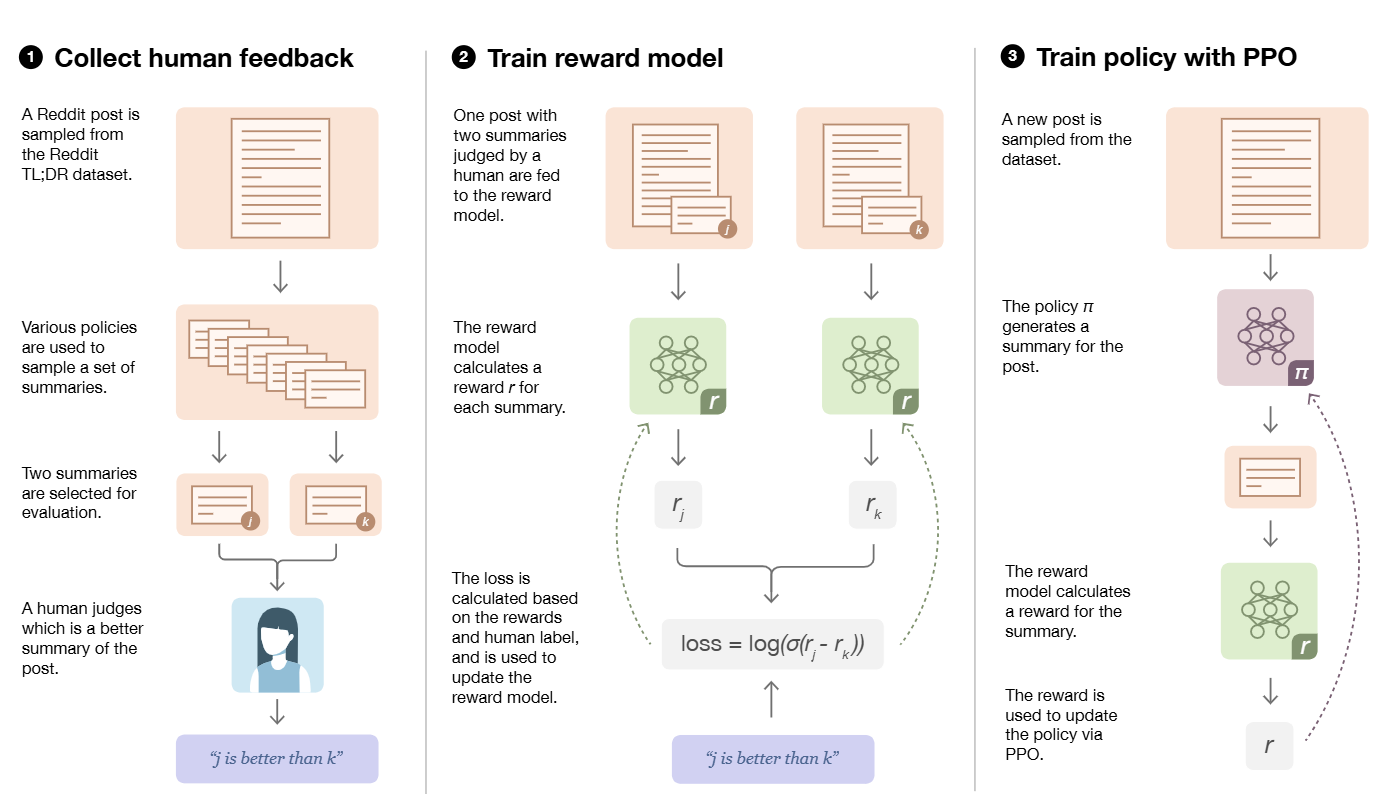 RLHF는 인간 선호도 데이터를 통해 보상함수 네트워크를 학습하고, 이를 이용해서 강화학습을 하는 분야이다.