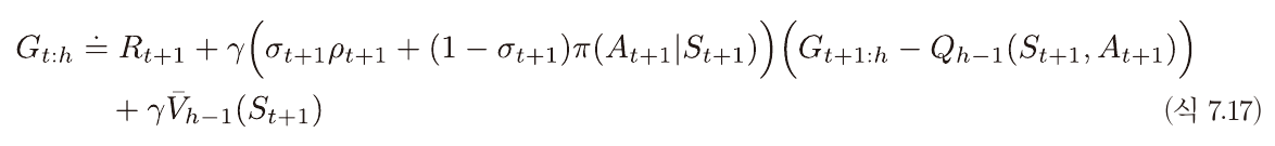 여기서 표본을 몇개 사용하느냐에 따라서 n단계 시간차 학습이라 부른다.