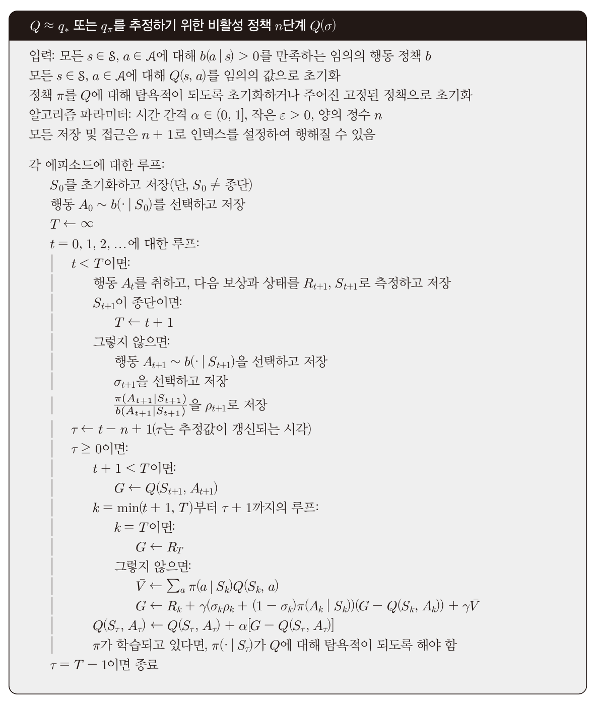 이 방법은 중요도 추출비율을 사용하지 않는 off-policy 방법이다.