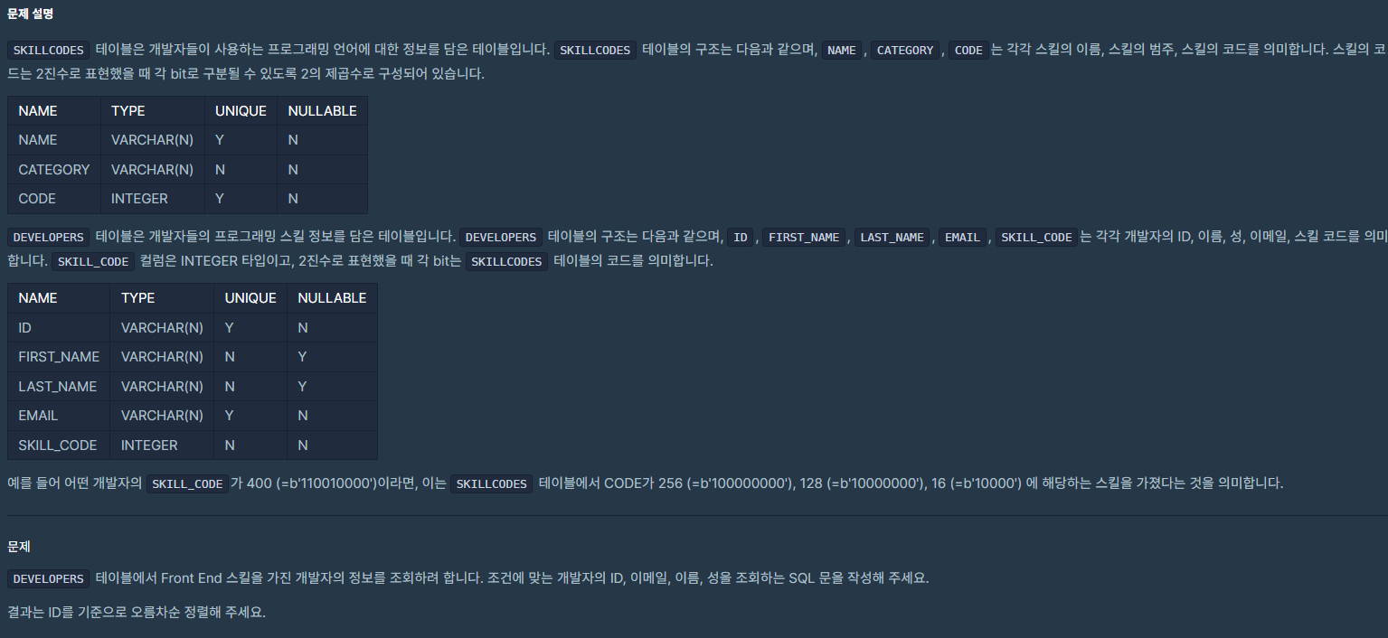 -- 주의할 점 : 개발자의 정보가 중복되어 나타날 수 있다