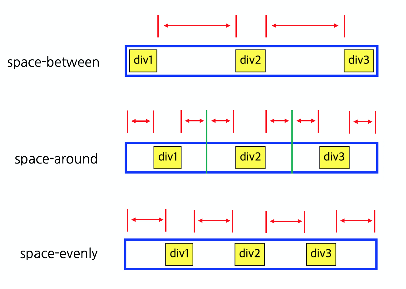 아이템들의 사이와 양 끝에 동일한 간격을 만든다.