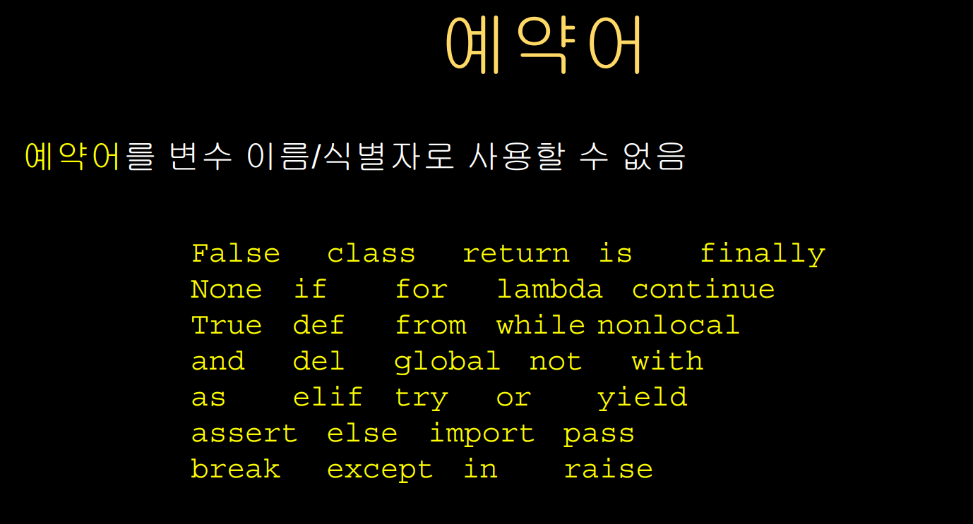 파이썬이 지정한 의미로만 쓰이는 특별한 단어이다.