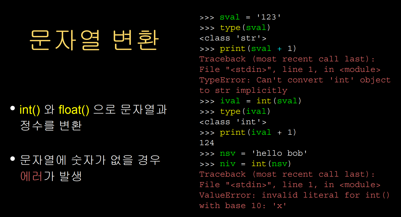 또, 내장되어 있는 float, int 등의 함수를 사용하여
