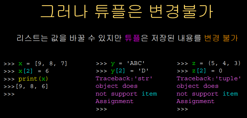 튜플이 리스트와 다른 점은