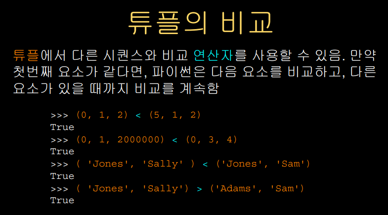 튜플끼리 서로 비교가 가능하다는 점이다.