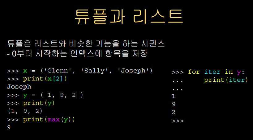 리스트건 튜플이건 같은 역할을 한다.