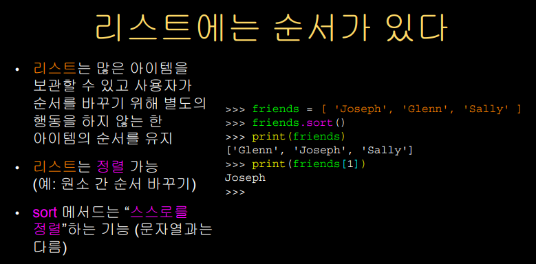 리스트 내 순서는 0, 1, 2 ... 순으로 간다.