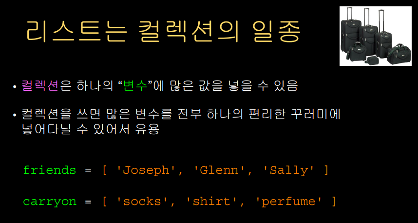 리스트에는 보통 같은 종류의 변수가 있는 경우가 많다.