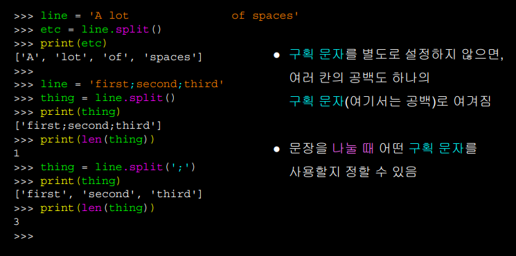 분리된 각 조각으로 구성된 리스트를 반환하는 것이다.