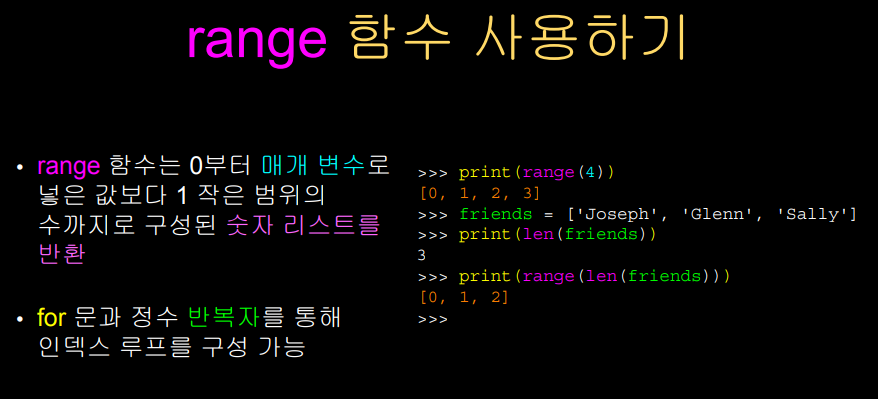 !위 슬라이드를 보며 range 함수 반환값을 확실하게 이해해보자!