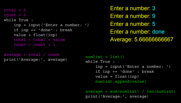 평균을 내고 싶은 경우 sum함수와 len 함수를 이용해서