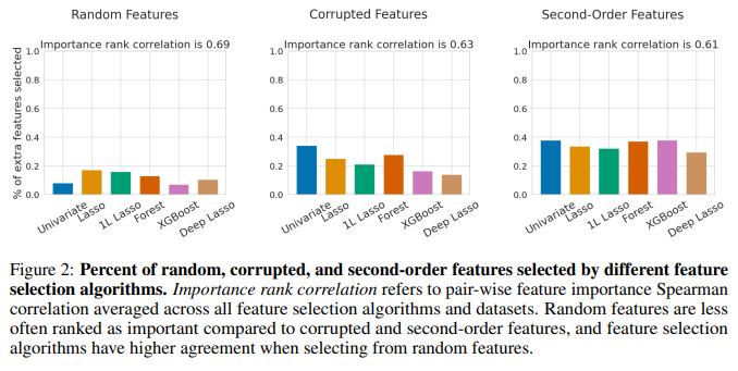 기존 방법들은 2차 특성을 걸러내지 못하고, 오히려 원본보다 더 높은 중요도를 부여하는 경향이 있음.