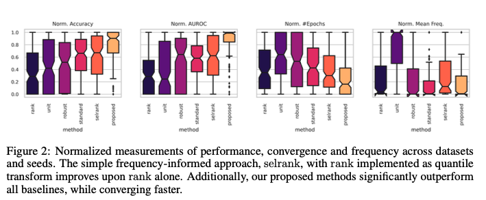 스펙트럼 분석 도구를 이용해 높은 불규칙성을 가지는 tabular 데이터셋에 대하여 scaling / ranking transformation 등으로 부드럽게 할 수 있지만, 이러한 변환은 정보 손실이나 최적화 문제를 초래할 수 있다. 이를 해결하기 위해 주파수 감소(frequency reduction)를 유도하는 새로운 neural network layer를 제안했다. 이 layer는 input feature의 저주파 표현(low-frequency representation)을 학습하도록 하여 성능을 향상시키고, 수렴 속도를 높인다. 제안된 방법은 14개의 tabular 데이터셋에서 신경망의 성능을 크게 향상시키고, 수렴 속도를 가속화한다.