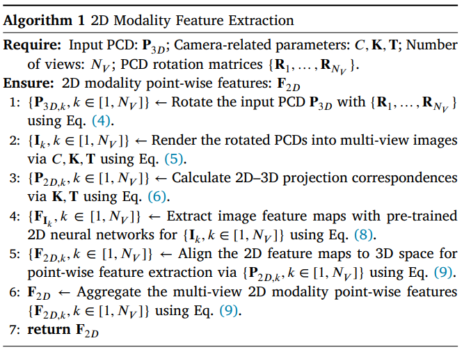 3D 포인트 클라우드를 multi-view 2D 이미지로 변환 후, 2D 신경망을 통해 의미 정보를 추출하고, 이를 3D 공간으로 다시 매핑하여 통합함.