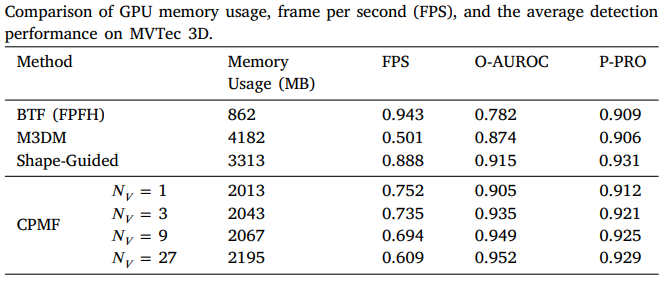 이러한 CPMF의 특징은 실제 산업 환경에서 이상 탐지 응용 프로그램의 강력한 후보 모델로 적용될 수 있고, Multi-modal 접근 방식은 3D 이상 탐지 문제를 해결하는데 중요한 역할을 할 수 있음.