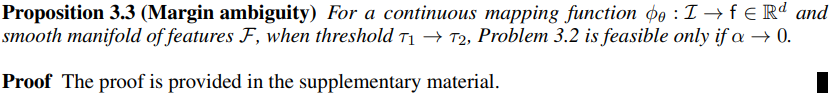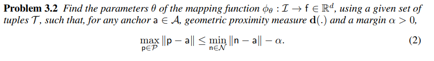 다시 말해, 주어진 매핑 함수가 이미지의 기하학적 거리와 특징 거리를 일관되게 유지할 수 있을 때, 두 임계값 과 가 같아지는 경우 마진 가 0이 되어야 문제 2의 실행 가능한 해가 존재한다는 것을 의미한다. 또한, 이러한 해는 특징 거리와 기하학적 거리의 원하는 순서를 유지하지 못한다. (max positive와 min negative가 같아지는 경우가 생기기 때문인 것 같음.)