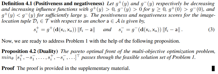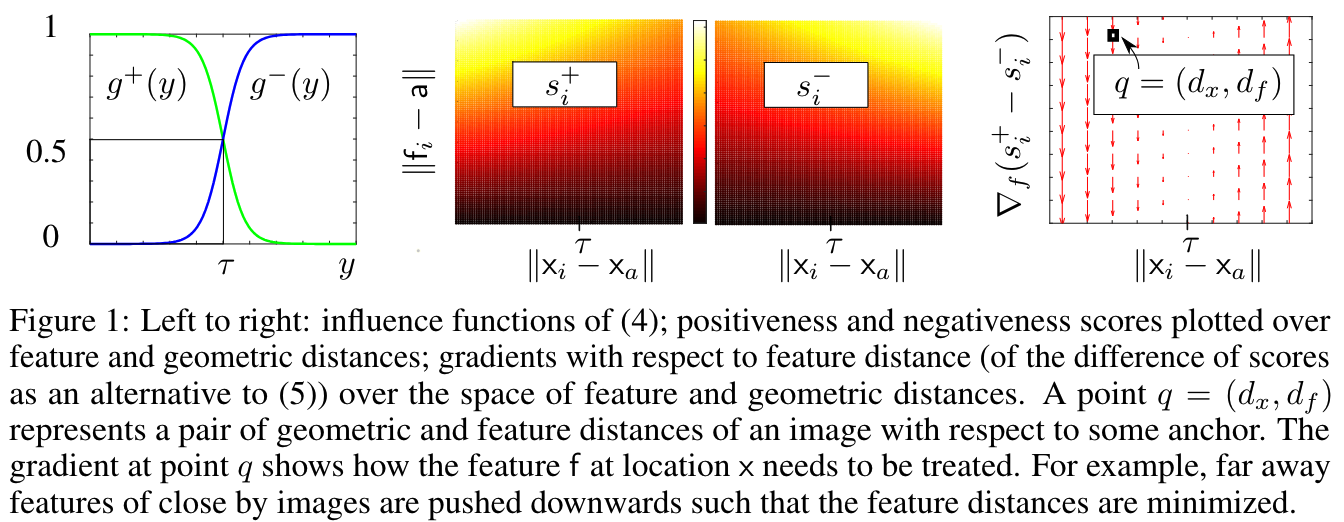 이 논문에서 제시하는 방법론은 이미지를 엄격하게 positive와 negative로 이진 분류 하는 것이 아니라, feature distance와 geometric proximity measure를 사용하여 positiveness와 negativeness에 대한 score를 매기고 로 명명한다.