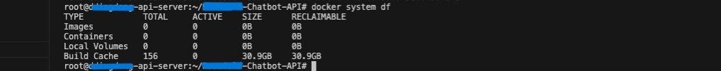 (์์ ์ฌ์ง์ ์์ธํ ๋ณด๋ฉด build cache ๊ฐ ๊ฑฐ์ 31GB ๋ฅผ ์ก์๋จน๊ณ ์๋ ๊ฒ์ ํ์ธํ ์ ์๋ค...)