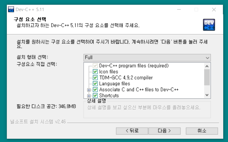 언어는 원하는 언어를 선택해주시고, 설정도 모두 체크하여 다운로드 하셔도 무방 합니다.