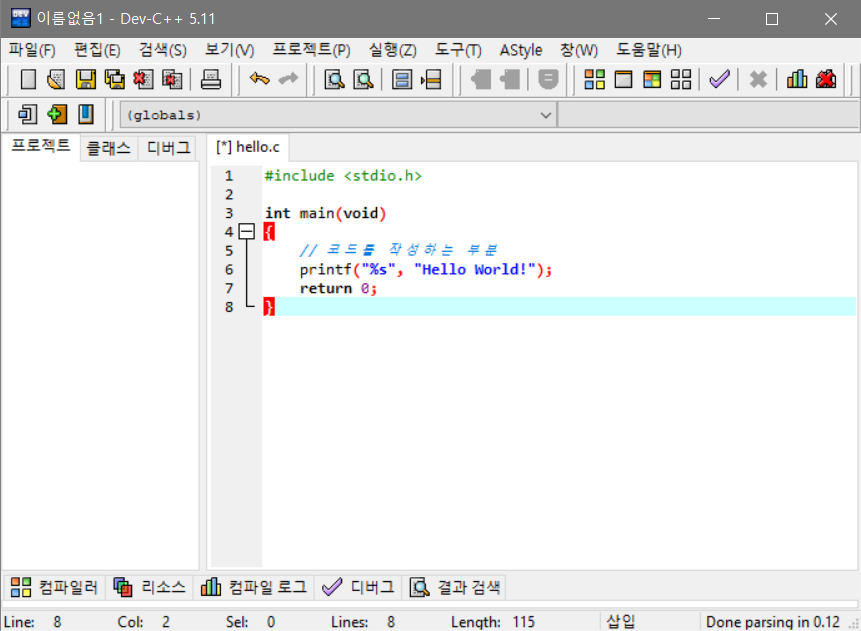 (공식 홈페이지에서 제공하는 Dev-C++는 컴파일이 잘 안되어서 sourceforge에서 받았습니다)