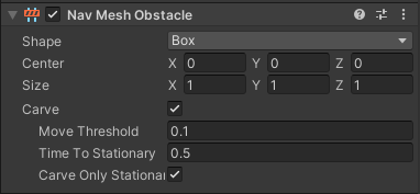 경로를 가로막을 오브젝트에 Nav Mesh Obstacle 컴포넌트 추가