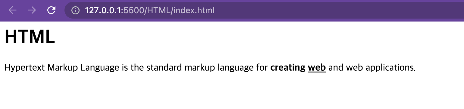 이렇게 태그를 사용하면 웹에선 어떻게 뜰까?