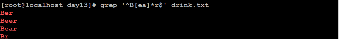 정규 표현식을 '(작은 따옴표)로 감싸지 않으면 셸에 의해 정규표현식이 확장될 수 있음.