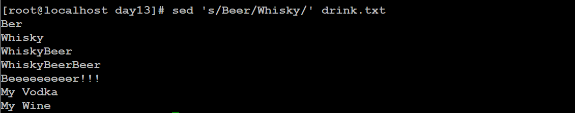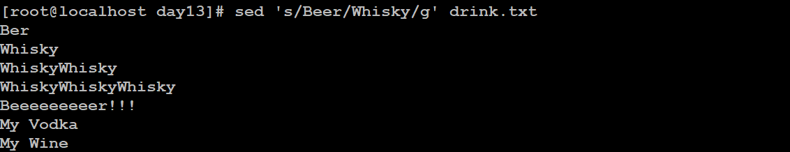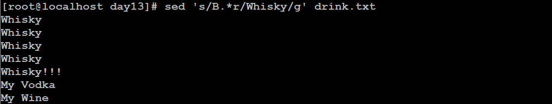 -> B로 시작하고 r로 끝나는 모든 문자열을 Whisky로 치환.
