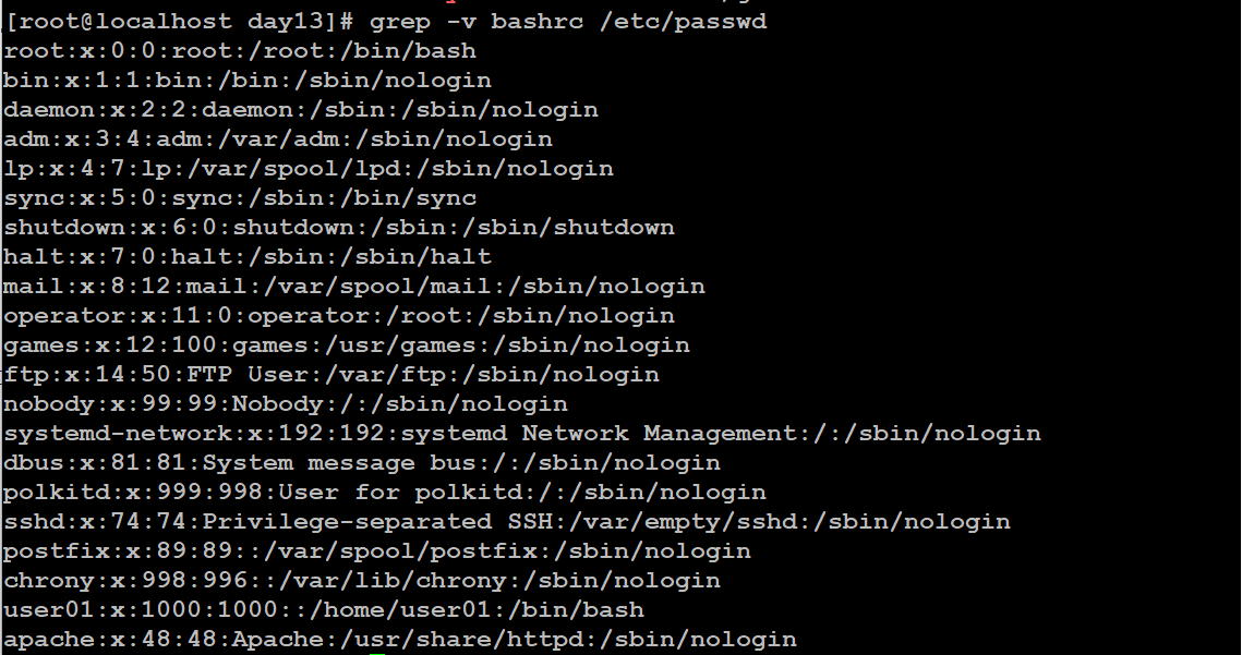 -v 옵션 -> 검색할 문자열이 나타나지 않는 행 출력. log 파일이나 data 파일에서 불필요한 부분이 출력되지 않도록 할 때 주로 사용.