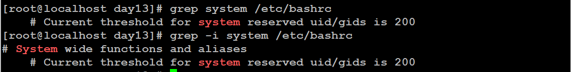 -i 옵션-> 대소문자 구분 없이 검색. system 검색시 System도 검색됨.