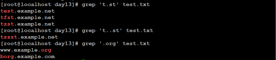 .(점) -> 임의의 문자 하나를 의미. 문자 '.'은 알파벳과 숫자뿐만 아니라 기호도 포함하기 때문에 .org라는 정규 표현식으로 검색하면 borg와 .org가 모두 검색됨.