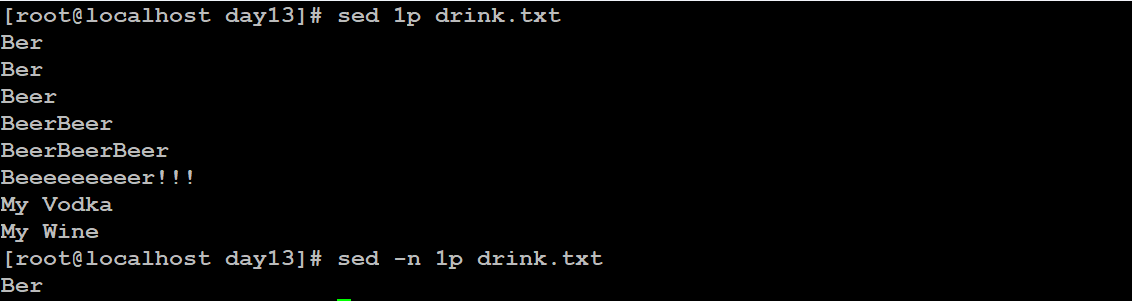 p -> 행 출력. sed는 한 행을 읽으면 패턴 스페이스라는 장소에 복사하고 편집 명령어를 실행한 뒤 패턴 스페이스의 내용을 출력함. 따라서