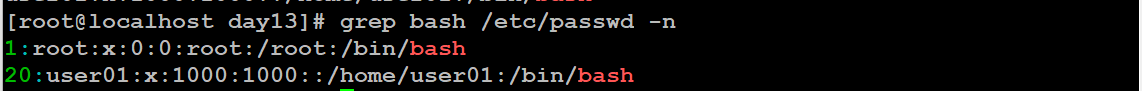 -n 옵션 -> 행 번호 출력. 파일에서 검색한 문자열의 위치를 파악하기위해 사용.