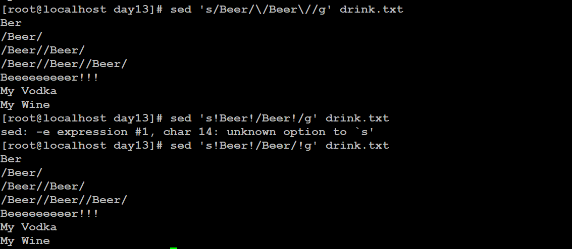 구분자 변경 -> 치환할 문자열 안에서 /를 사용하려면 \/으로 입력하면 됨. 또는, s 뒤에 다른 문자를 지정하면 해당 문자가 구분자로 사용됨(! 또는 %가 많이 사용됨).