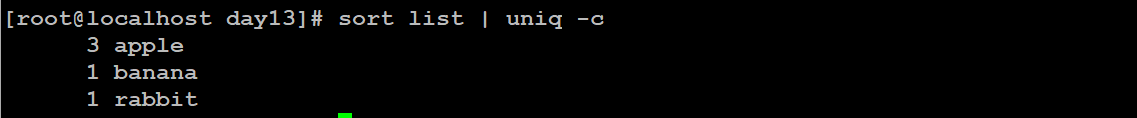uniq 명령어 -> 중복 제거. 연속된 중복 데이터를 하나만 출력. 즉, 연속되지 않은 중복 데이터는 제거하지 않으므로, sort 명령어로 정렬한 뒤에 uniq 명령어 실행 시 파일 전체의 중복 제거 가능.