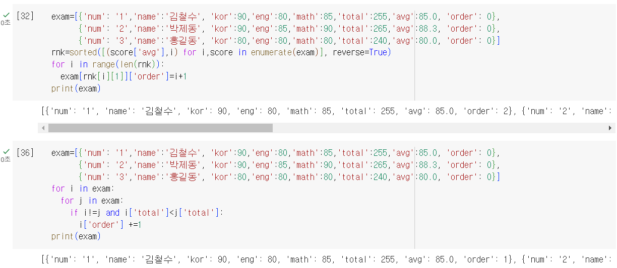 enumerate(): 반복문 사용 시 몇번째 반복문인지 확인이 필요할 때 사용. 인덱스 번호와 요소값을 tuple 형태로 반환