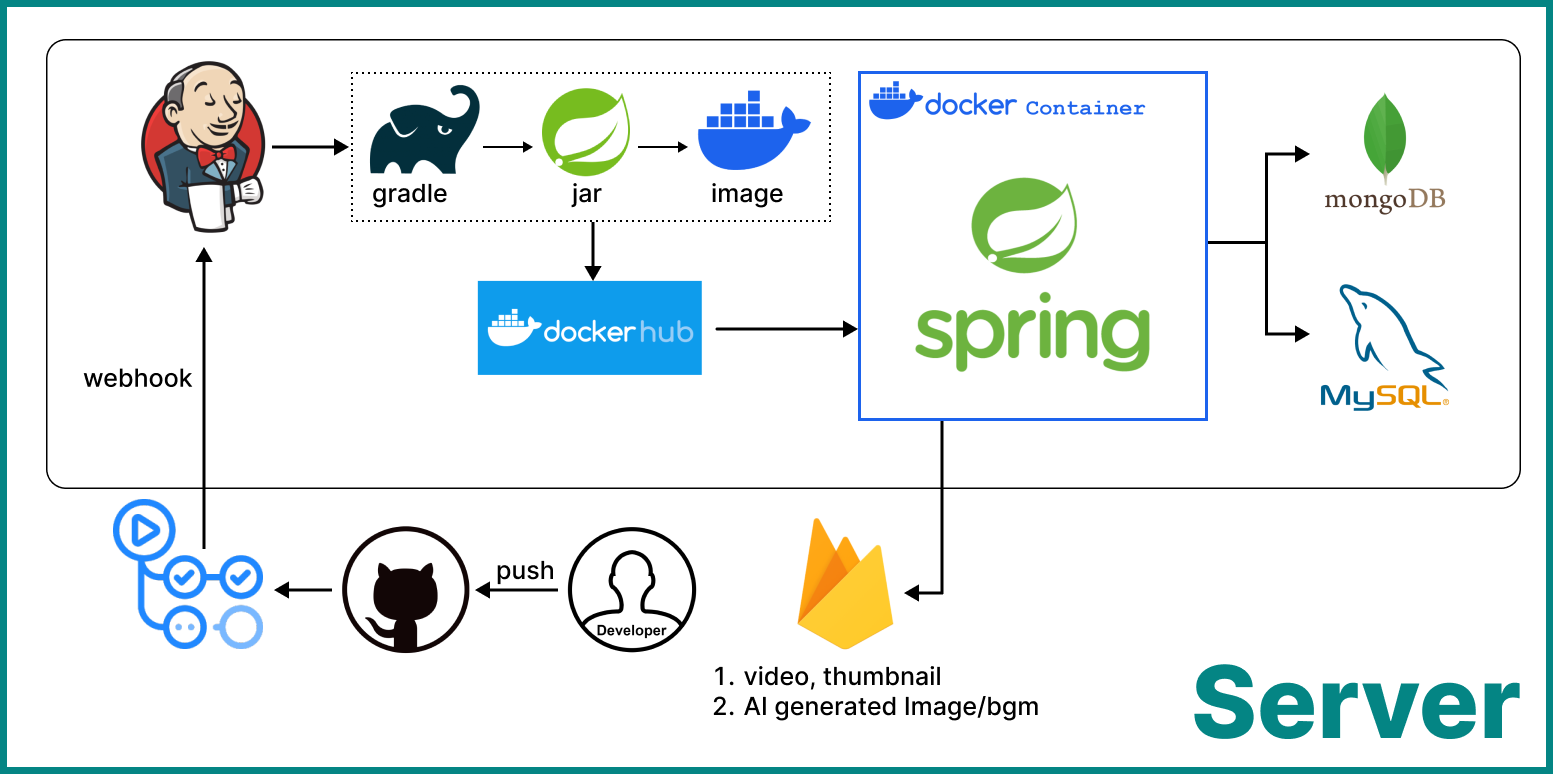 이 전체 배포과정에서 개발자가 한 일은 github 브랜치에 push한 것 밖에 없다.