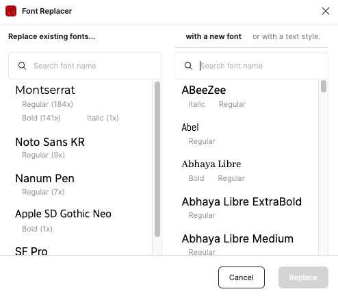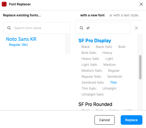 피그마에서 작업하다 보면 모종의 이유로 정했던 폰트 종류를 변경해야 할 때가 있다.