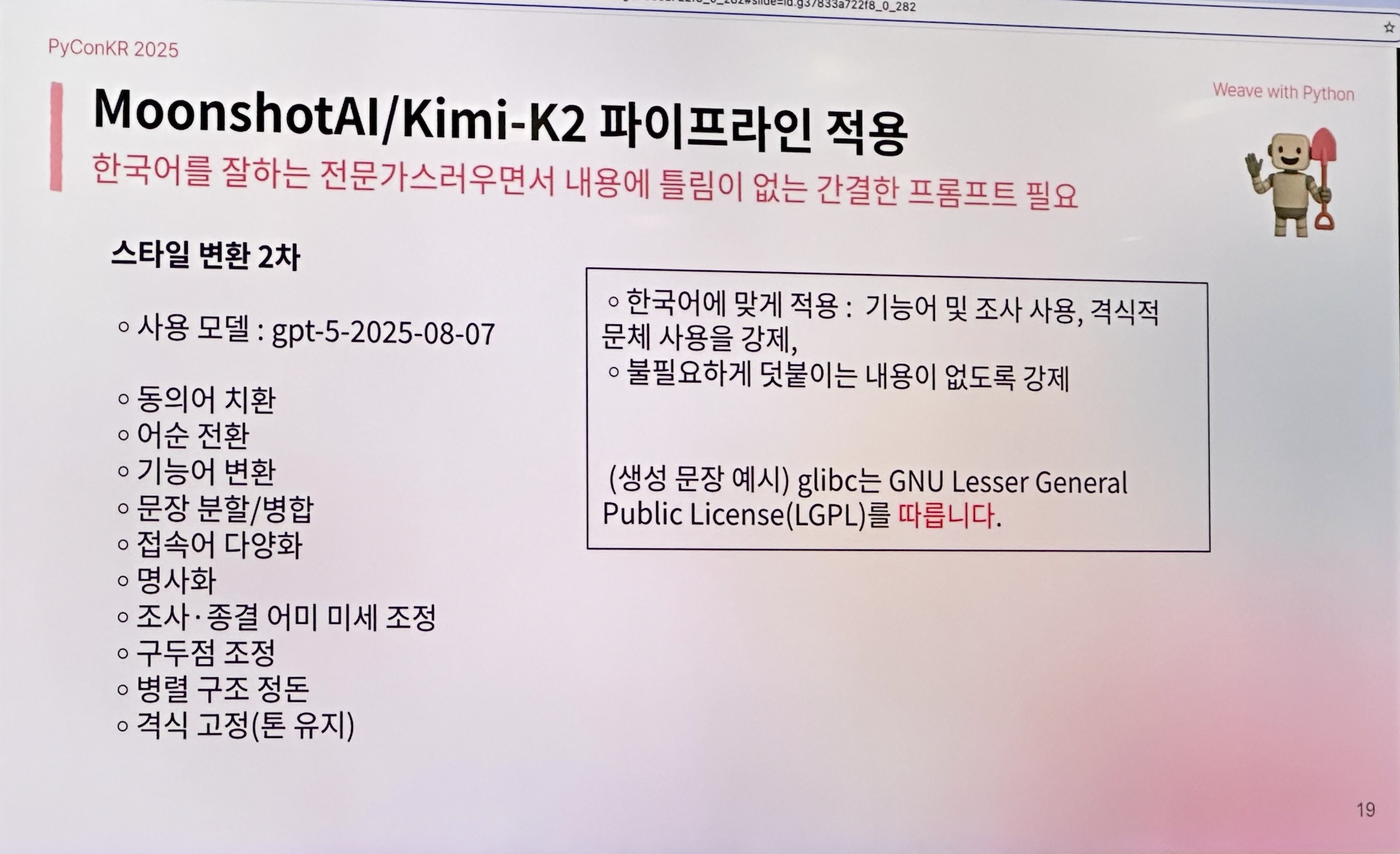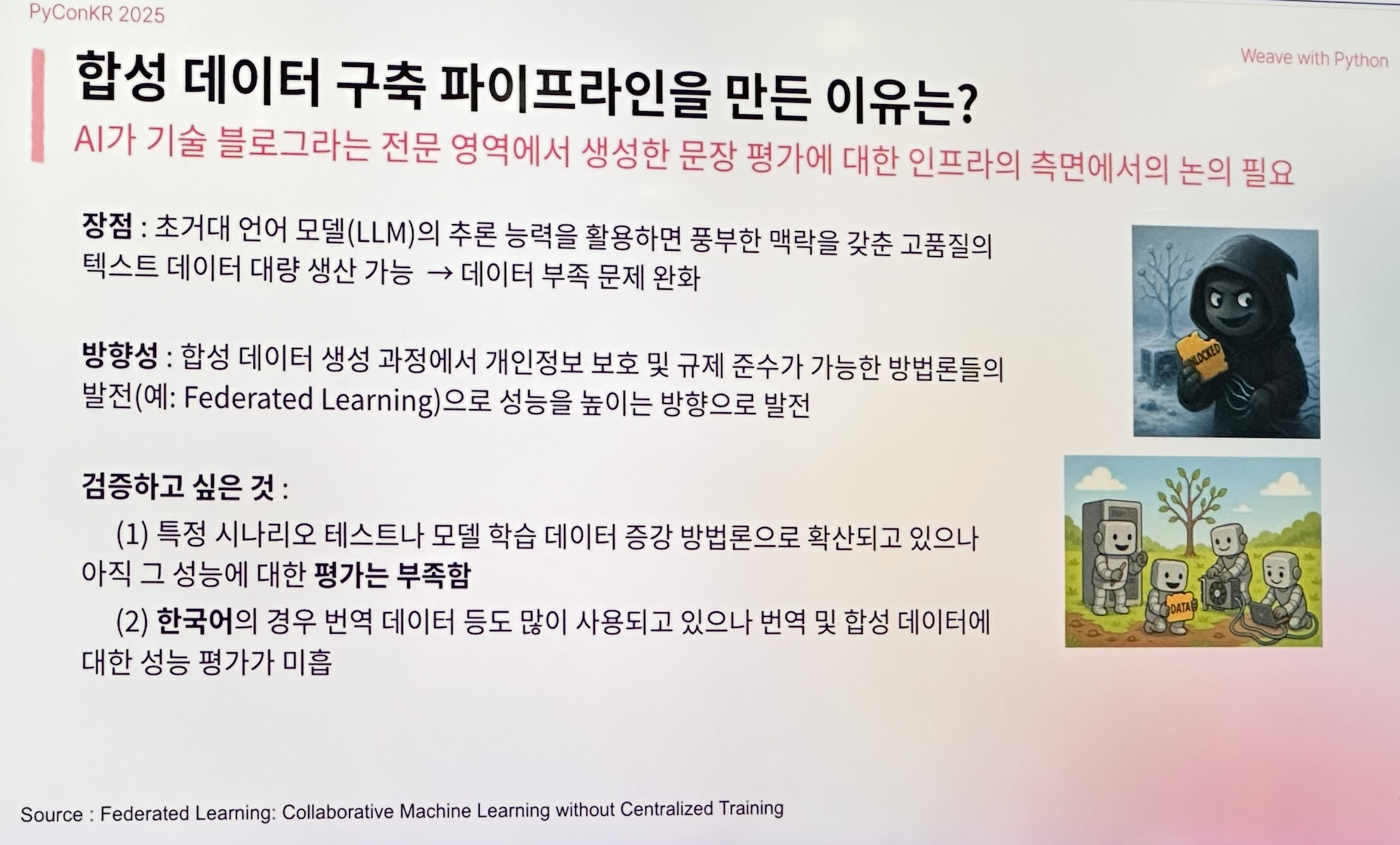 따라서 완전히 새로운 문장을 만드는 방식이 아닌 고쳐쓰기(rephrase) 방식을 사용해 합성 데이터와 데이터 파이프라인을 구축한 경험을 공유해주었다.