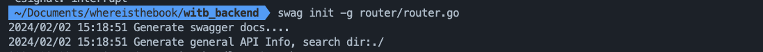 init 명령어를 실행하면 docs/docs.go가 생성되는 걸 확인할 수 있다.