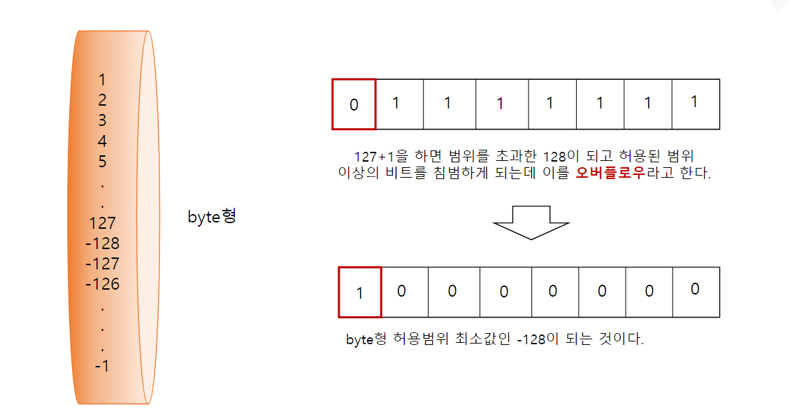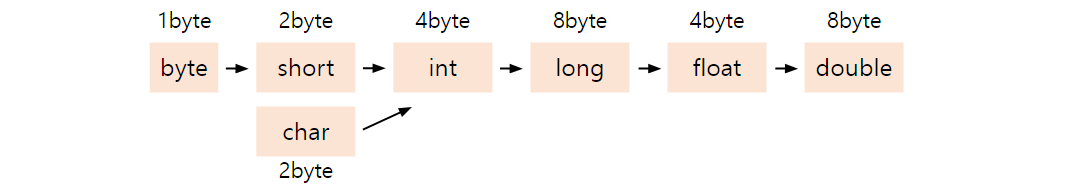 * 정수형 : byte(1byte), short(2byte), int(4byte), long(8byte)