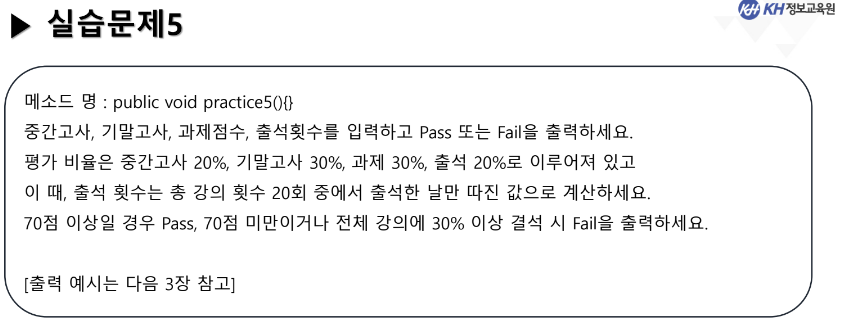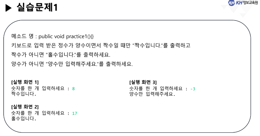 기능 작성 클래스 : ConditionPractice