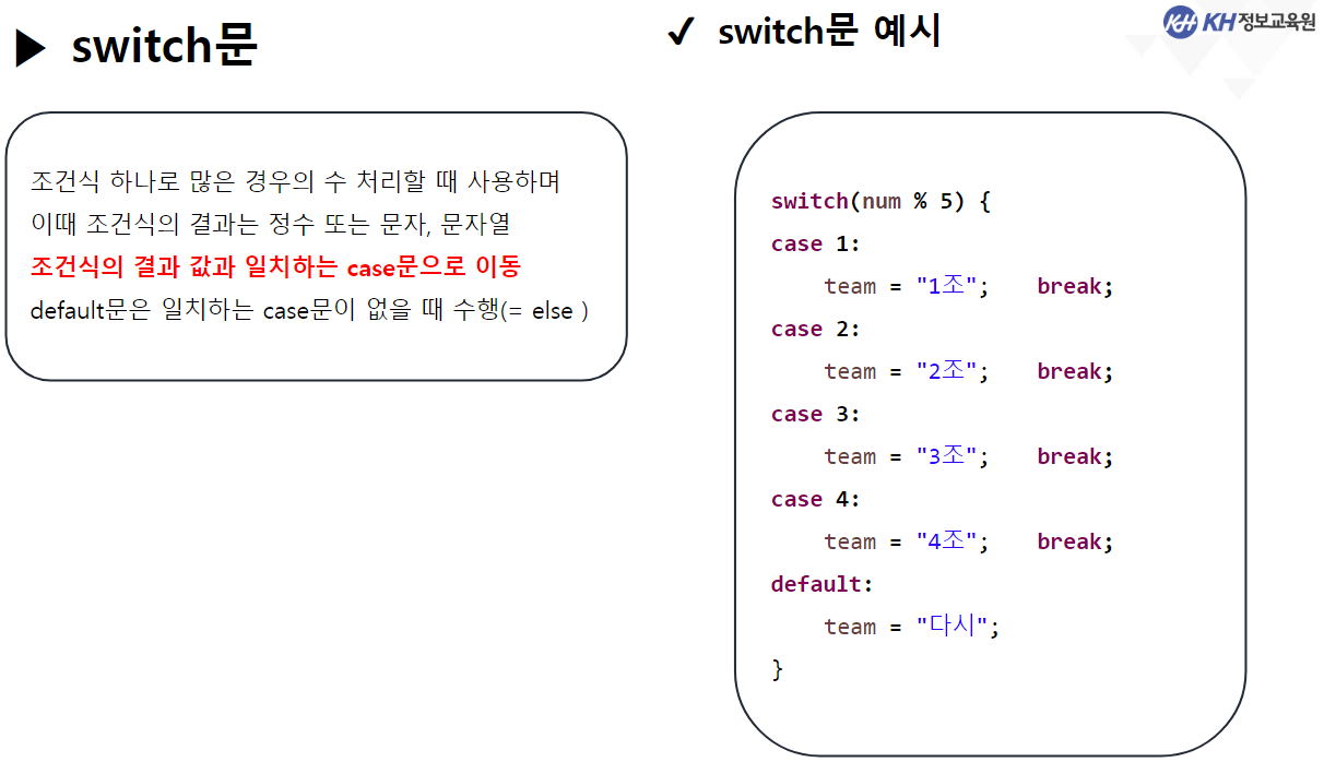 * - 식 하나의 결과로 많은 경우의 수를 처리할 때 사용하는 조건문