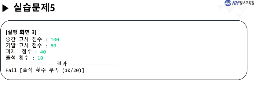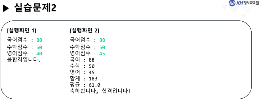 System.out.println(result ? "축하합니다, 합격입니다!" : "불합격입니다.");