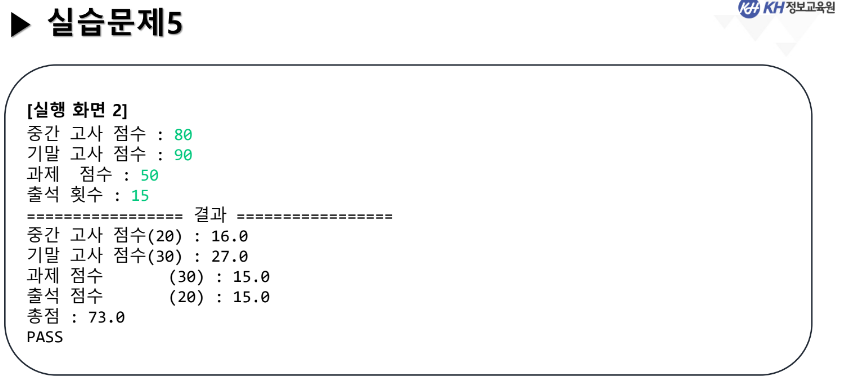 System.out.printf("국어 : %d\n수학 : %d\n영어 : %d\n합계 : %d\n평균 : %.1f\n", kor, math, eng, sum, avg);
