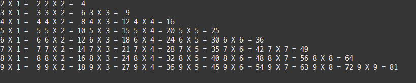 for(int dan = 2; dan <= 9; dan++) { // 2 ~ 9 단까지 차례대로 증가