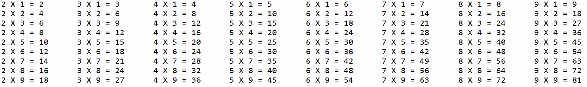 // 구구단 2~9단