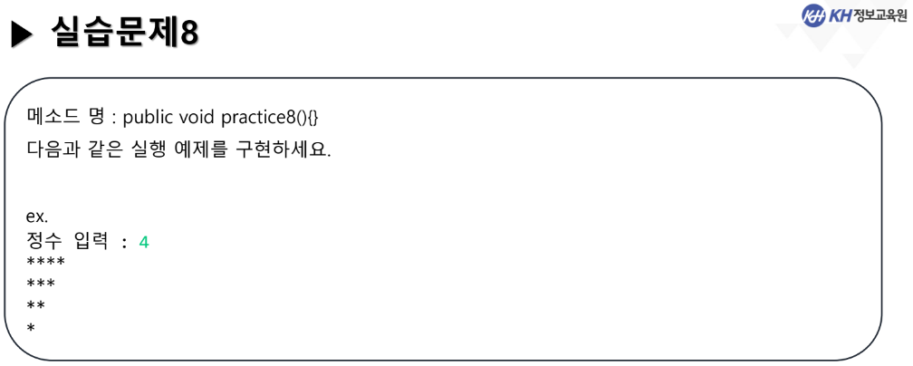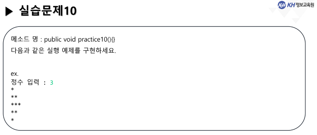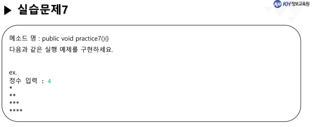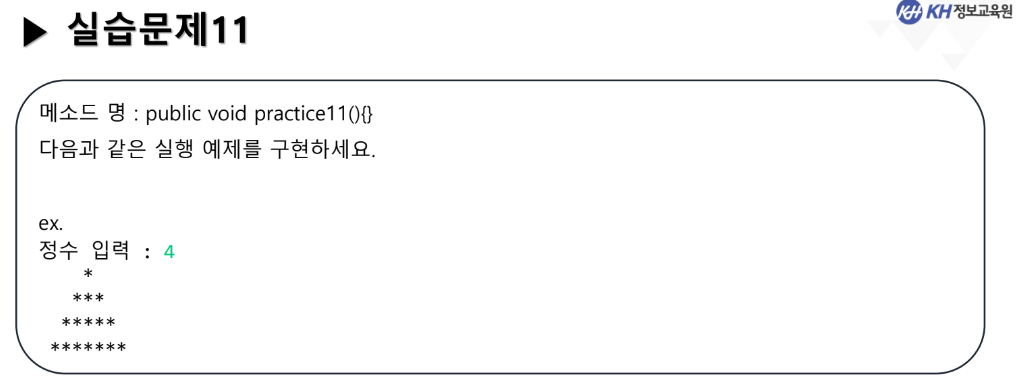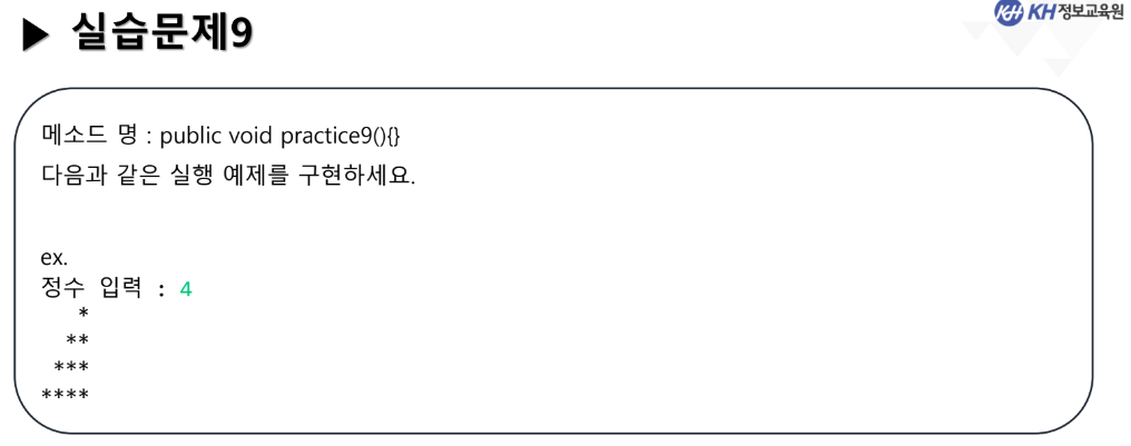 // 2중 for문을 이용하여 다음 모양을 출력하시오.