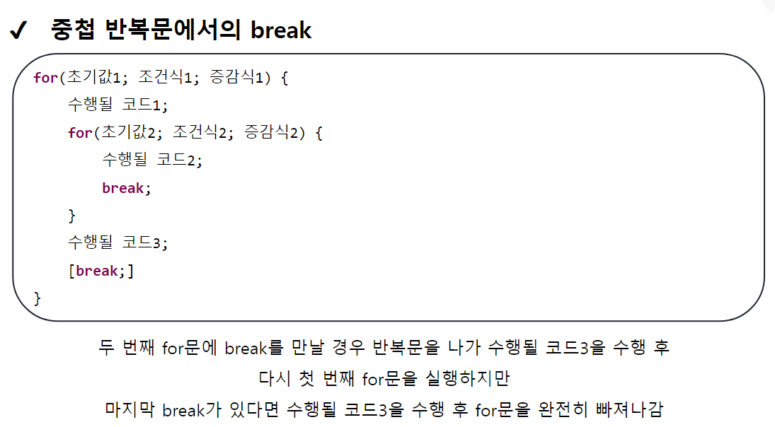 // 중첩 반복문 내부에서 break 사용하기